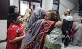 Sejumlah warga bersilaturahim berpelukan usai melaksanakan Sholat Idul Fitri 1445 Hijriah di Kampung Akuarium, Jakarta, Rabu (10/4/2024). Dalam rangka momen Idul Fitri 1445 Hijriah, warga Kampung Akuarium saling bersilaturahim dari unit ke unit untuk saling bermaafan, berbagi THR dan makan bersama. (FOTO : Republika/Putra M. Akbar)