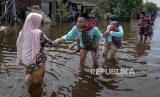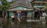 REPUBLIKA.CO.ID, DEMAK. -- Warga melewati jalan desa yang terendam banjir untuk merayakan Lebaran bersama keluarga di Desa Sayung, Kecamatan Sayung, Kabupaten Demak, Jawa Tengah, Rabu (10/4/2024).