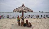 Sejumlah warga berwisata saat libur lebaran di Pantai Lagoon, Ancol Taman Impian, Jakarta, Kamis (11/4/2024). Pada hari kedua Idul Fitri 1445 Hijriah jumlah kunjungan wisatawan ke Ancol tersebut mencapai 53 ribu orang hingga pukul 13.00 WIB. Ancol Taman Impian memprediksi pengunjung pada hari kedua Lebaran 2024 ini bisa mencapai sebanyak 80 ribu, jumlah itu berpotensi terus bertambah hingga akhir libur Lebaran. (FOTO : Republika/Prayogi)
