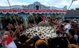 REPUBLIKA.CO.ID, SOLO -- Abdi Dalem Keraton Kasunanan Surakarta Hadiningrat mengarak gunungan saat perayaan Tradisi Grebeg Syawal di halaman keraton setempat menuju Masjid Agung Solo, Jawa Tengah, Kamis (11/4/2024).