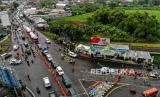 Foto udara kondisi kemacetan arus lalu lintas di Simpang Tiga Mengkreng, Kediri, Jawa Timur, Kamis (11/4/2024). Kemacetan sekitar tiga kilometer yang terjadi di titik pertemuan tiga kabupaten yakni Kediri, Jombang, dan Nganjuk itu akibat meningkatnya volume kendaraan saat Lebaran hari kedua. (FOTO : ANTARA FOTO/Muhammad Mada)