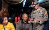 REPUBLIKA.CO.ID, BADUNG -- Anggota Satpol PP Kabupaten Badung memeriksa kartu tanda penduduk (KTP) penumpang bus AKAP saat inspeksi mendadak (sidak) pada arus balik Lebaran di Terminal Mengwi, Badung, Bali, Ahad (14/4/2024). Kegiatan tersebut untuk mengantisipasi masuknya warga pendatang tanpa identitas ke Bali terutama saat arus balik Lebaran.