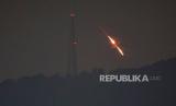 Sistem pertahanan udara Iron Dome Israel diluncurkan untuk mencegat rudal yang ditembakkan Iran, di Israel, Ahad (14/4/2024). Iran melancarkan serangan militer langsung pertamanya terhadap Israel pada hari Sabtu. Militer Israel mengatakan Iran menembakkan lebih dari 100 drone pembawa bom ke arah Israel. Beberapa jam kemudian, Iran mengumumkan bahwa mereka juga telah meluncurkan rudal balistik yang jauh lebih merusak. (FOTO : AP Photo/Tomer Neuberg)