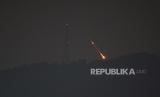 Sistem pertahanan udara Iron Dome Israel diluncurkan untuk mencegat rudal yang ditembakkan Iran, di Israel, Ahad (14/4/2024). Iran melancarkan serangan militer langsung pertamanya terhadap Israel pada hari Sabtu. Militer Israel mengatakan Iran menembakkan lebih dari 100 drone pembawa bom ke arah Israel. Beberapa jam kemudian, Iran mengumumkan bahwa mereka juga telah meluncurkan rudal balistik yang jauh lebih merusak. (FOTO : REUTERS/Amir Cohen )