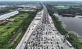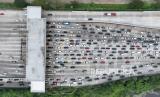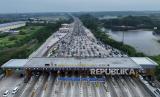 REPUBLIKA.CO.ID, KARAWANG -- Kendaraan arus balik arah Jakarta terjebak kemacetan menjelang GT Cikampek Utama di Karawang, Jawa Barat, Ahad (14/4/2024).
