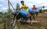 REPUBLIKA.CO.ID, ENREKANG -- Tukang ojek pertanian mengangkut karung berisi hasil panen bawang merah di Desa Salu Deawata, Kabupaten Enrekang, Sulawesi Selatan, Ahad(14/4/2024).