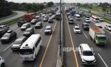 REPUBLIKA.CO.ID, KARAWANG -- Sejumlah kendaraan arus balik arah Jakarta terjebak kemacetan di Tol Jakarta-Cikampek (Japek), Karawang Timur, Jawa Barat, Senin (15/4/2024).
