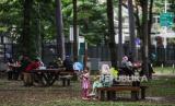 Sejumlah warga beristirahat saat berwisata di Tebet Eco Park, Tebet, Jakarta, Senin (15/4/2024). Taman kota menjadi destinasi wisata alternatif bagi warga untuk menghabiskan libur Lebaran 1445 Hijriah. Mudahnya akses menuju taman kota dan bebas tarif tanpa dipungut biaya masuk taman kota menjadi pilihan tepat bagi warga yang ingin berlibur ditengah tempat wisata lainnya yang dipenuhi oleh wisatawan. (FOTO : Republika/Putra M. Akbar)