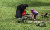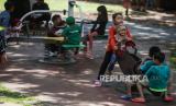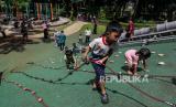 Anak-anak bermain saat berwisata di Tebet Eco Park, Tebet, Jakarta, Senin (15/4/2024). Taman kota menjadi destinasi wisata alternatif bagi warga untuk menghabiskan libur Lebaran 1445 Hijriah. Mudahnya akses menuju taman kota dan bebas tarif tanpa dipungut biaya masuk taman kota menjadi pilihan tepat bagi warga yang ingin berlibur ditengah tempat wisata lainnya yang dipenuhi oleh wisatawan. (FOTO : Republika/Putra M. Akbar)