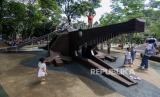 Anak-anak didampingi orang tuanya melihat patung semut saat berwisata di Tebet Eco Park, Tebet, Jakarta, Senin (15/4/2024). Taman kota menjadi destinasi wisata alternatif bagi warga untuk menghabiskan libur Lebaran 1445 Hijriah. Mudahnya akses menuju taman kota dan bebas tarif tanpa dipungut biaya masuk taman kota menjadi pilihan tepat bagi warga yang ingin berlibur ditengah tempat wisata lainnya yang dipenuhi oleh wisatawan. (FOTO : Republika/Putra M. Akbar)