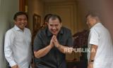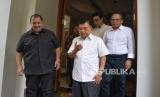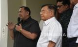 Ketua Umum Dewan Masjid Indonesia (DMI) Jusuf Kalla (JK) bersama Pendeta Gilbert Lumoindong usai melakukan pertemuan di kediaman JK, Kebayoran Baru, Jakarta, Senin (15/4/2024). Dalam kesempatan tersebut Pendeta Gilbert meminta maaf kepada seluruh masyarakat Indonesia khususnya umat Islam atas kegaduhan yang terjadi akibat ceramahnya yang menyinggung soal salat dan zakat dalam Islam. Pendeta Gilbert menyebut video ceramahnya yang viral di media sosial dan menimbulkan kegaduhan ini telah dipotong-potong dan tidak memuat penjelasan yang lengkap. Ia pun menegaskan tak bermaksud untuk mengolok-olok umat Muslim melalui ceramahnya tersebut. (FOTO : Republika/Prayogi)