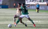 Pesepak bola PSS Sleman Muhammad Abduh Lestalahu (kanan) berebut bola dengan pesepak bola Arema FC Achmad Maulana Syarif (kiri) pada pertandingan BRI Liga I di Stadion Manahan, Solo, Jawa Tengah, Senin (15/4/2024). PSS Sleman menang atas Arema FC dengan skor 4-1. Gol PSS dicetak Ajak Riak di menit ke-16, Kevin Gomes menit ke-40, gol bunuh diri Julian Guevara menit ke-86, dan Saddam Gaffar menit 93. Arema hanya mampu mencetak satu gol lewat Charles Raphael de Almeida 30. (FOTO : ANTARA FOTO/Mohammad Ayudha)