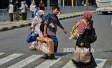 REPUBLIKA.CO.ID, JAKARTA -- Pemudik tiba di Terminal Kampung Rambutan, Jakarta, Selasa (16/4/2024).
