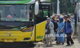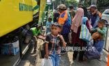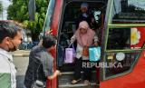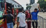 Pemudik tiba di Terminal Kampung Rambutan, Jakarta, Selasa (16/4/2024). Korlantas mencatat puncak arus balik libur lebaran 2024 terjadi pada malam tadi (15/4) hingga Selasa (16/4) pagi pukul 06.00 WIB. Berdasarkan data Korlantas Polri, sebanyak 30 persen pemudik masih belum tiba di Jakarta. Sementara, menurut Kepala Terminal Kampung Rambutan, Yulza Ramadhoni mengatakan berdasarkan data sementara kedatangan penumpang bus AKAP melonjak sebesar 45 persen dibanding Idulfitri tahun lalu. (FOTO : Republika/Thoudy Badai)