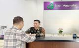 Karyawan melayani nasabah di kantor Bank Muamalat cabang Kisaran, Sumatera Utara, Selasa (16/4/2024). Bank Muamalat kembali melayani nasabah pasca libur panjang hari raya Idul fitri 1445 H melalui jaringan kantor cabang yang tersebar di 36 provinsi di Indonesia dan 1 kantor cabang di Kuala Lumpur, Malaysia. Selain melalui kantor cabang, layanan digital Bank Muamalat juga dapat diakses melalui aplikasi mobile banking Muamalat DIN, internet banking, cash management system Madina serta jaringan ATM. (FOTO : Dok Republika)