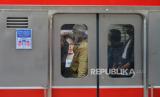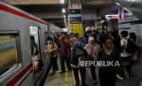Pekerja menaiki KRL saat jam pulang kerja di Stasiun Manggarai, Jakarta, Selasa (16/4/2024). (FOTO : Republika/Thoudy Badai)