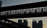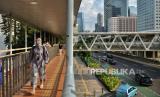 Pekerja berjalan diatas JPO saat jam pulang kerja di kawasan Sudirman, Jakarta, Selasa (16/4/2024). (FOTO : Republika/Thoudy Badai)