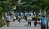 Pekerja berjalan di kawasan Sudirman, Jakarta, Selasa (16/4/2024). (FOTO : Republika/Thoudy Badai)