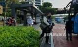 Pekerja menaiki bus saat jam pulang kerja di Jakarta, Selasa (16/4/2024). (FOTO : Republika/Thoudy Badai)