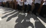 REPUBLIKA.CO.ID, SURABAYA. -- Sejumlah pegawai Pemkot Surabaya antre untuk menjabat tangan Wali Kota dan Wakil Wali Kota Surabaya saat menghadiri halal bihalal di Balai Kota Surabaya, Jawa Timur, Selasa (16/4/2024).
