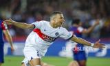 Pemain Paris Saint-Germain Kylian Mbappe melakukan selebrasi seusai mencetak gol ke gawang barcelona pada pertandingan sepak bola leg kedua perempat final Liga Champions di stadion Olimpic Lluis Companys di Barcelona, Spanyol, Rabu (17/4/2024). PSG sukses menaklukkan Barca dengan skor 4-1. Gol PSG dicetak Ousmane Dembele di menit ke-40, Vitor Ferreira menit ke-54 dan Kylian Mbappe menit ke-61 dan 89. Satu gol Barcelona Dicetak Raphinha di menit ke-12. Dengan hasil ini PSG melaju ke babak semifinal Liga Champions dengan agregat 6-4. (FOTO : EPA-EFE/Alberto Estevez)