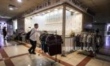 Pengunjung berjalan di dekat kertas pemberitahuan yang ditempelkan pada salah satu kios di Pasar Tanah Abang Blok B, Jakarta, Kamis (18/4/2024). Pasar Tanah Abang Blok B kembali beroperasi pasca libur Hari Raya Idul Fitri 1445 Hijriah sedangkan Blok A akan buka kembali pada Jumat (19/4/2024). Meskipun sudah kembali beroperasi pasar tersebut masih sepi dari aktivitas jual beli dan masih banyak pedagang yang belum membuka kiosnya. (FOTO : Republika/Putra M. Akbar)