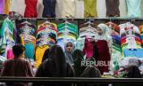 Sejumlah pengunjung saat belanja di Pasar Tanah Abang Blok B, Jakarta, Kamis (18/4/2024). Pasar Tanah Abang Blok B kembali beroperasi pasca libur Hari Raya Idul Fitri 1445 Hijriah sedangkan Blok A akan buka kembali pada Jumat (19/4/2024). Meskipun sudah kembali beroperasi pasar tersebut masih sepi dari aktivitas jual beli dan masih banyak pedagang yang belum membuka kiosnya. (FOTO : Republika/Putra M. Akbar)