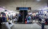 Pengunjung turun dari eskalator di Pasar Tanah Abang Blok B, Jakarta, Kamis (18/4/2024). Pasar Tanah Abang Blok B kembali beroperasi pasca libur Hari Raya Idul Fitri 1445 Hijriah sedangkan Blok A akan buka kembali pada Jumat (19/4/2024). Meskipun sudah kembali beroperasi pasar tersebut masih sepi dari aktivitas jual beli dan masih banyak pedagang yang belum membuka kiosnya. (FOTO : Republika/Putra M. Akbar)
