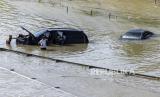 Banjir mulai surut setelah sempat merendam mobil-mobil mewah dan mengubah jalan-jalan besar seperti sungai.
