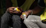 REPUBLIKA.CO.ID, SURABAYA. -- Penyalahguna narkoba menunggu tes narkoba di Polrestabes Surabaya, Jawa Timur, Kamis (18/4/2024).