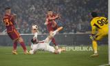 REPUBLIKA.CO.ID, SAN SIRO -- AS Roma lolos ke semifinal Liga Europa usai menyingkirkan AC Milan. Roma yang harus menuntaskan laga dengan 10 orang itu menang 2-1 atas Milan di leg kedua perempatfinal.