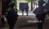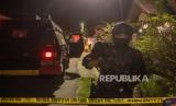 REPUBLIKA.CO.ID, PALU. -- Personel Birmob dan Tim Gegana Polda Sulteng berjaga di depan sebuah rumah saat penggeledahan oleh Densus 88 Anti Teror di Palu, Sulawesi Tengah, Kamis (18/4/2024).