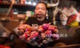 Pedagang menunjukan bawang merah di Pasar Senen, Jakarta, Jumat (19/4/2024). Pasca Lebaran, harga bawang merah di Pasar Senen menyentuh harga Rp 70.000 hingga Rp 75.000 per kilogram. Harga tersebut melonjak naik dari saat sebelum Lebaran yang berkisar Rp 35.000 hingga Rp 45.000 per kilogram. (FOTO : Republika/Putra M. Akbar)