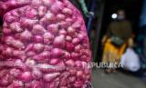 Harga bawang merah di Pasar Senen menyentuh harga Rp 75.000 /kilogram.