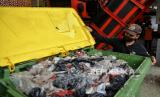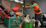 Petugas Dinas Lingkungan Hidup Provinsi DKI Jakarta melakukan pemilahan sampah di Tempat Pengolahan Sampah Reduce-Reuse-Recycle (TPS 3R) Asrama Dinas LH Ciracas, Jakarta Timur, Jumat (19/4/2024). Pada periode masa Lebaran 2024, Dinas Lingkungan Hidup Provinsi DKI Jakarta mengangkut 66.000 ton lebih sampah yang di lima wilayah kota administrasi dan Kepulauan seribu. Jumlah sampah tersebut menurun pada hari H dan H+1 Lebaran yakni 2.000 ton lebih per hari dibandingkan pada H-7 Lebaran yakni 8.000-9.000 ton per hari. Keberadaan TPS3R tersebut dapat membantu mengurangi penumpukan sampah sebanyak 25-50 ton sampah per hari yang dapat diolah menjadi RDF atau bahan bakar jumputan padat (BBJP). (FOTO : Republika/Thoudy Badai)