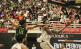 REPUBLIKA.CO.ID, SLEMAN. -- Tim basket Pelita Jaya Jakarta melawan Bima Perkasa Jogja saat pertandingan Indonesian Basketball League (IBL) 2024 di GOR Pancasila UGM, Sleman, DI Yogyakarta, Jumat (19/4/2024).