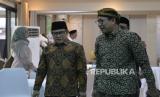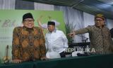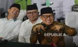 Ketua Umum PKB Muhaimin Iskandar (kiri) bersiap memberikan keterangan terkait persiapan PKB jelang Pilkada 2024 di Jakarta, Sabtu (20/4/2024). PKB membuka pendaftaran calon kepala daerah untuk Pilkada 2024 dan mempersilakan semua pihak dari berbagai lapisan untuk mendaftar/ mengurus ke kantor DPP, DPW, DPC serta sistem online yang sudah disiapkan PKB. (FOTO : Republika/Prayogi)