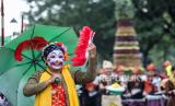 REPUBLIKA.CO.ID, JAKARTA. -- Seniman tampil pada acara kirab tumpeng agung keberkahan di Taman Mini Indonesia Indah (TMII), Jakarta, Sabtu (20/4/2024).