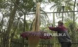 Petugas mengamati bunga bangkai (Amorphophallus Titanium Becc) yang mekar sempurna di Kebun Raya Cibodas, Kabupaten Cianjur, Jawa Barat, Sabtu (20/4/2024). Bunga bangkai tersebut mekar sempurna dengan memiliki tinggi 310,5 cm dan berdiameter 161 cm pada Jumat (19/4). (FOTO : ANTARA FOTO/Henry Purba)