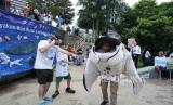 Kegiatan teatrikal berbalut edukasi mengenai sampah plastik laut di HBKB, Jakarta, Ahad (21/4/2024). (FOTO : Dok.Republika)