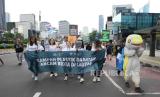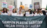 Konservasi Indonesia bersama Prilly Latuconsina dan Komunitas Generasi Peduli Bumi (GPB), serta himpunan mahasiswa departemen Biologi Universitas Indonesia (UI) dan kelompok mahasiswa Biologi Kelautan UI (SIGMA B-UI), menggelar aksi damai dengan kegiatan teatrikal berbalut edukasi mengenai sampah plastik laut di HBKB, Jakarta, Ahad (21/4/2024). (FOTO : Dok.Republika)