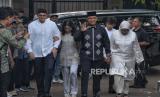 Calon presiden nomor urut 01 Anies Baswedan bersama keluarga tiba untuk melaksanakan halal bihalal di rumah dinas Wakil Ketua DPR yang juga Calon Wakil Presiden nomor urut 01 Muhaimin Iskandar, Jakarta, Sabtu (20/4/2024). (FOTO : Republika/Prayogi)
