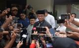 Pasangan Capres-cawapres nomor urut 01 Anies Baswedan dan Muhaimin Iskandar menjawab pertanyaan wartawan saat halal bihalal di rumah dinas Cak Imin, Jakarta, Sabtu (20/4/2024). (FOTO : Republika/Prayogi)