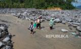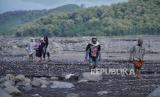 REPUBLIKA.CO.ID, LUMAJANG -- Warga melintasi daerah aliran sungai (DAS) Kali Regoyo di Desa Jugosari, Kecamatan Candipuro, Lumajang, Jawa Timur, Ahad (21/4/2024).