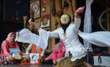 REPUBLIKA.CO.ID, BANDUNG -- Penampilan Tari Topeng Panji oleh seniman tari Risyani yang melambangkan kesucian dan sosok yang tidak lagi memikirkan dirinya sendiri saat peringatan Hari Kartini yang bertajuk Gerak Tubuh Tampa Batas, di Bongkeng Arts Space, Bojongkoneng, Kota Bandung, Ahad (21/4/2024).