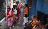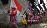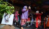 Sejumlah ibu-ibu dari Komunitas Bongkeng keliling kampung sambil membawa gambar RA Kartini untuk mesosialisasikan Hari Kartini dalam rangka memperingati Hari Kartini yang bertajuk Gerak Tubuh Tampa Batas, di Bongkeng Arts Space, Bojongkoneng, Kota Bandung, Ahad (21/4/2024). Kegiatan Hari Kartini yang dikemas dalam aksi seni gerak ini menggambarkan peran Kartini sebagai salah satu pelopor kebangkitan perempuan Indonesia. (FOTO : Edi Yusuf/Republika)