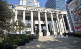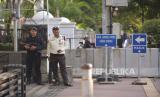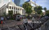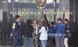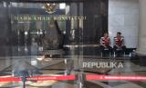 Suasana jelang sidang putusan Perselisihan Hasil Pemilihan Umum (PHPU) Pilpres 2024 di Gedung Mahkamah Konstitusi, Senin (22/4/2024). MK akan menggelar sidang putusan perkara perselisihan hasil pemilihan umum presiden dan wakil presiden 2024 pada hari ini pukul 09.00 WIB. (FOTO : Republika/Prayogi )