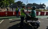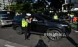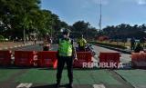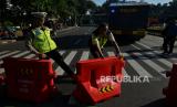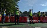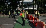 Petugas Kepolisian mengatur lalu lintas saat penutupan jalan jelang sidang putusan Perselisihan Hasil Pemilihan Umum (PHPU) di Jalan Medan Merdeka Barat, Jakarta, Senin (22/4/2024). Mahkamah Konstitusi akan menggelar sidang putusan perkara PHPU presiden dan wakil presiden 2024 hari ini pukul 09.00 WIB. (FOTO : Republika/Thoudy Badai)