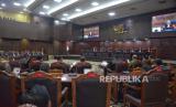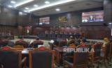 REPUBLIKA.CO.ID, JAKARTA. -- Suasana jalannya sidang putusan Perselisihan Hasil Pemilihan Umum (PHPU) Pilpres 2024 di Gedung Mahkamah Konstitusi, Jakarta, Senin (22/4/2024).