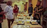 REPUBLIKA.CO.ID, MAKASSAR -- Petugas melihat contoh menu makanan penerbangan jemaah calon haji saat pengujian kualitas di Asrama Haji Makassar, Sulawesi Selatan, Senin (22/4/2024).